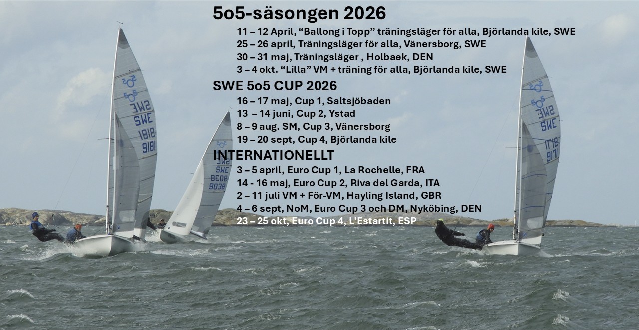 SWE 5o5 CUP startar traditionsenligt med CUP 1 under Saltsjöbadsregattan på Baggensfjärden i Stockholm, 16 – 17 maj. Det är kul segling med bra arrangemang av KSSS, mycket after-sailtjöt och gemensam middag på lördagskvällen. Att man också kan vinna en inteckning i fina ”Parbleus vandringspris”, en halvmodell av en 5o5, är ytterligare plus i kanten. All info på: https://www.sailarena.com/sv/se/club/ksss/saltsjobadsregattan-2026/