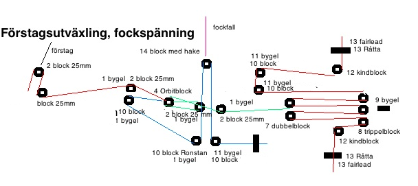 Skiss över Förstagsutväxling och fockspänning